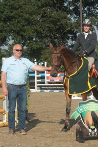 Links: Gast-jurylid Bert van den Oetelaar met de winnaar van de vierjarigen: Arjen van Diepen met ‘Goddess Taonga’.